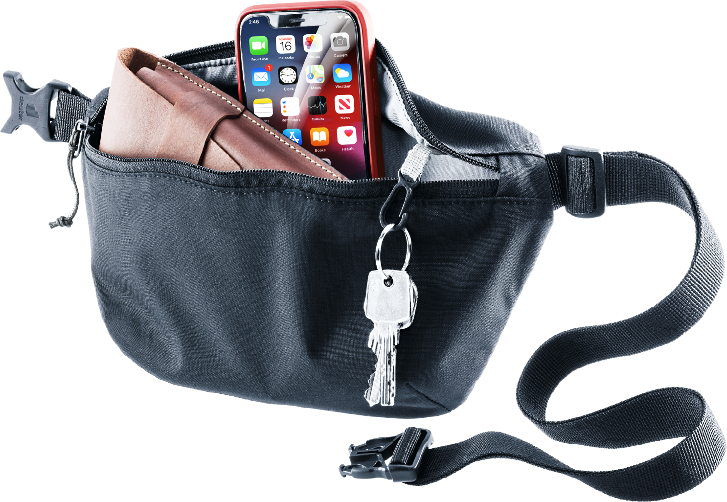 • Reißverschluss-Vortasche mit Schlüsselclip